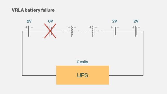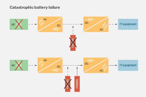 所有UPS系统都需要两组电池串来防止在其中一组出现故障时出现灾难性故障。