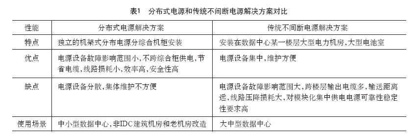 4 分布电源和传统不间断电源解决方案对比(见表1)