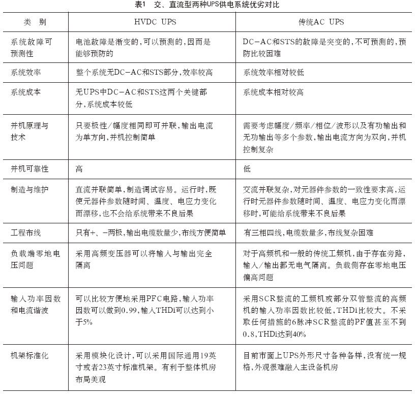 交、直流两种供电系统优劣对比见表1。