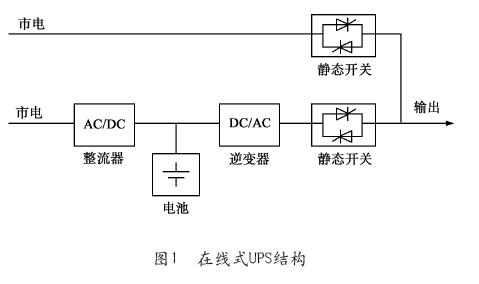 从可靠性角度分析,在数据中心供电系统中,串联级数越多,其故障节点就会增加,供电可靠性就会相应降低。反之,并联个数越多,其系统供电可靠性就会越高。目前大多数据中心的传统在线式UPS系统,采用串联式结构(见图1),故障节点较多,因而具有较高的故障率和相对较低的可靠性。