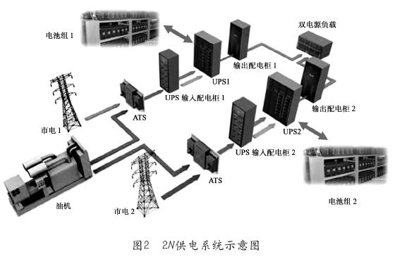 此外,如图2所示,数据中心通常采用可靠的2N供电体系,大多情况下电网稳定性良好,加之数据中心的双路供电保障,电池则长期备用,利用率很低,造成很大一部分投资浪费,且电池长期处于浮充状态,会产生发热和效率损耗,影响电池的使用性能和寿命。据统计,2014年,中国铅酸蓄电池产量22069.77万千伏安时,同比2013年增长4.58%。而这些电池大多都未被很好的利用,是一种巨大的能源浪费。