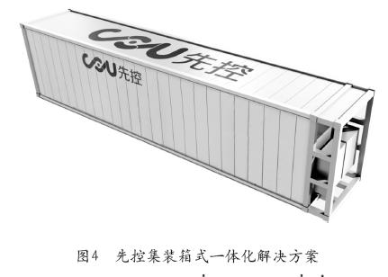 储能式UPS可配套采用集装箱式一体化解决方案(见图4),将储能设施、消防设施、监控以及温控系统集成于集装箱内,保证整套系统的功能完整性及适用性。同时,标准化、模块化、集成化的系统,可有效地保证工程一致性,不由施工团队的技术水平决定项目质量。建设周期短,安装施工过程简单,后期维护方便,产品生产成本低,供货周期短,具有高可靠性、高安全性、高集成度、低成本、低能耗的特点,可实现快速灵活部署,是一套标准的、集成的一体化解决方案。