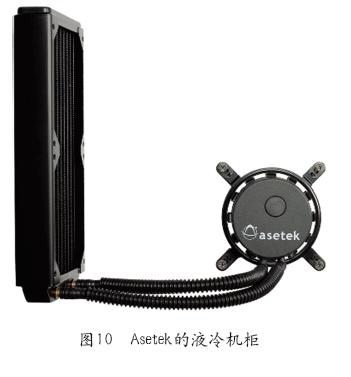 Asetek的液冷机柜是在室外侧充分利用室外冷源,实现自然冷却,节约数据中心的运维成本。模块化设计为数据中心提供了最大的可扩展性。以1U服务器(功耗为500W,其中CPU及内存功耗为400W)为例,80%(400W)的热负荷来自于CPU及内存,采用液冷散热,剩余20%(100W)的热负荷采用风冷散热。PUE值由1.61下降至1.08,单机柜每年节省电费7784美元,能使数据中心节能50%,密度增加2.5倍。Asetek的液冷机柜如图10所示。