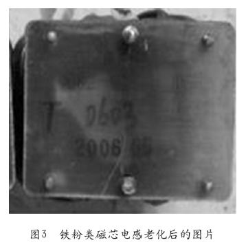 ②一般生产厂商由于成本原因,电感磁芯往往选用铁粉类的磁芯。铁粉类的磁芯有一个致命缺陷,即老化问题。这类磁芯随着使用时间的推移,磁芯性能会逐渐下降,电感量会逐渐降低。当电感量降低到一定程度时,电感就会完全失效,导致机器故障。一般三年左右,铁粉类磁芯的电感的寿命就差不多了。当机器长时间带重载或工作环境温度比较高,电感老化问题会更严重。UPS铁粉类电感老化后的照片见图3。正常铁粉类磁芯电感见图4。