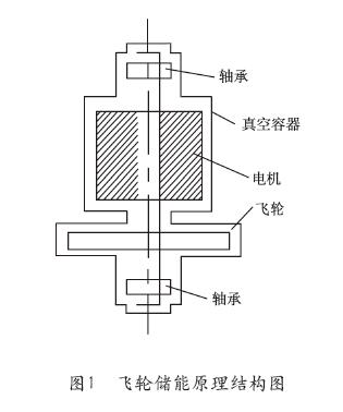 一般的飞轮储能装置中有一个内置电机,在储能时,它作为电动机给飞轮加速;当释放能量时,它作为发电机给外部供电,飞轮的转速不断下降,动能转化为电能和其它形式的能量;当飞轮空转时,整个装置低功耗运行。
