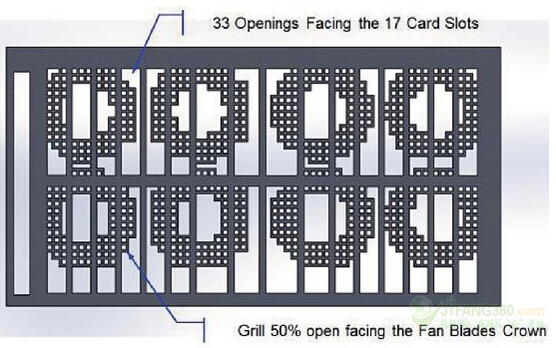 将数据中心机房的环境温度提高到65°C(149°F)可以帮助企业大大降低冷却成本。然而,在这样的高温状况下维持操作也会带来相应的挑战,而且这还不包括在如此严酷的环境下工作对于工作人员而言是多么的恐怖。风扇被内置于机架内部,以防止他们的运行操作温度高于70°C(158°F)。有了这样的结构安排,风扇的进气口必须经过缜密的设计,以保证其可以容纳一个防尘过滤器。排气装置是相当重要的,以防止当空气接近卡笼时所带来的大的速度变化,因为这种变化会使得任何一个卡均可以被放置在机架的任何插槽的要求难以满足。